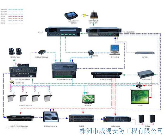 基本的會(huì)議系統(tǒng),由麥克風(fēng)、功放、音響、桌面顯示設(shè)備(例如桌面智能終端、液晶顯示器),這幾樣設(shè)備的組合應(yīng)用也可以說(shuō)是一個(gè)會(huì)議系統(tǒng)了,它們起到了傳聲,顯示,擴(kuò)聲的作用,達(dá)到能看、能聽(tīng)、能說(shuō)話(huà)。